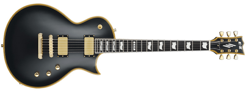 E-Ⅱ(ESP)のレスポール・タイプ。ヴィンテージブラックとゴールドパーツが美しく高級感があるモデル。ピックアップやコントロールなどカスタマイズしています。