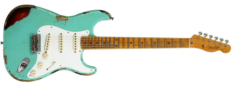 Fenderカスタムショップの“ミスチフメーカー”。テレキャスターのヘッドと、ストラトキャスターのボディが融合したルックスが特徴で、鮮やかなグリーンが印象的。