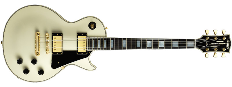 Navigatorのレスポール・タイプのビンテージホワイト。ピックアップやコントロールノブなどがカスタムされている。