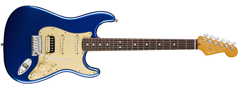 フェンダーのストラトキャスターで鮮やかなコブラブルーが印象的なモデル。ピックアップはHSS配列で繊細ながらパワフルなサウンドも対応できます。